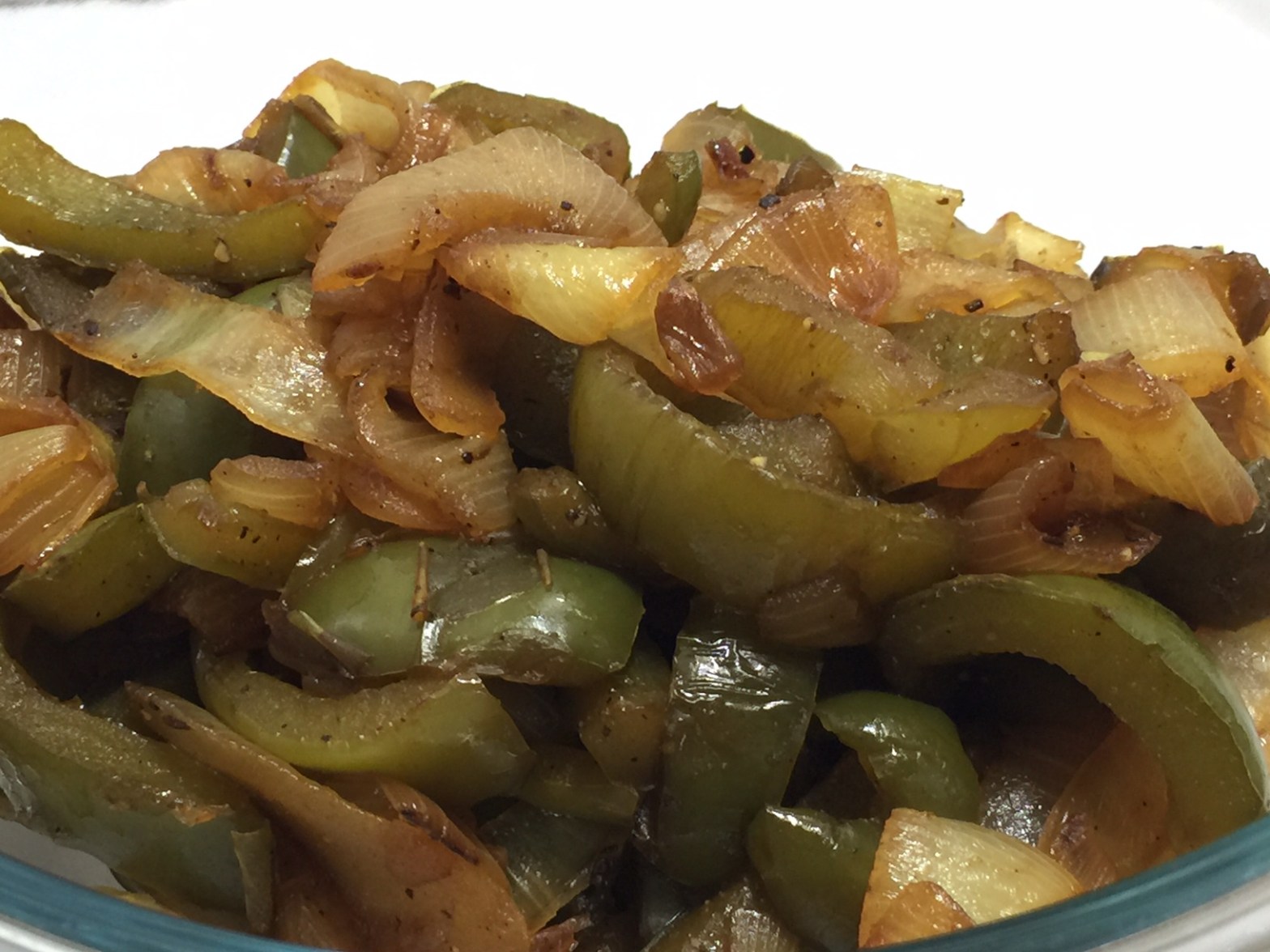 Absent the fat, the pepper and onion flavors are more distinct – less muted. In fact, I’ve noticed before that after adding fat to a recipe, the existing flavors became muted, requiring an adjustment in seasoning.