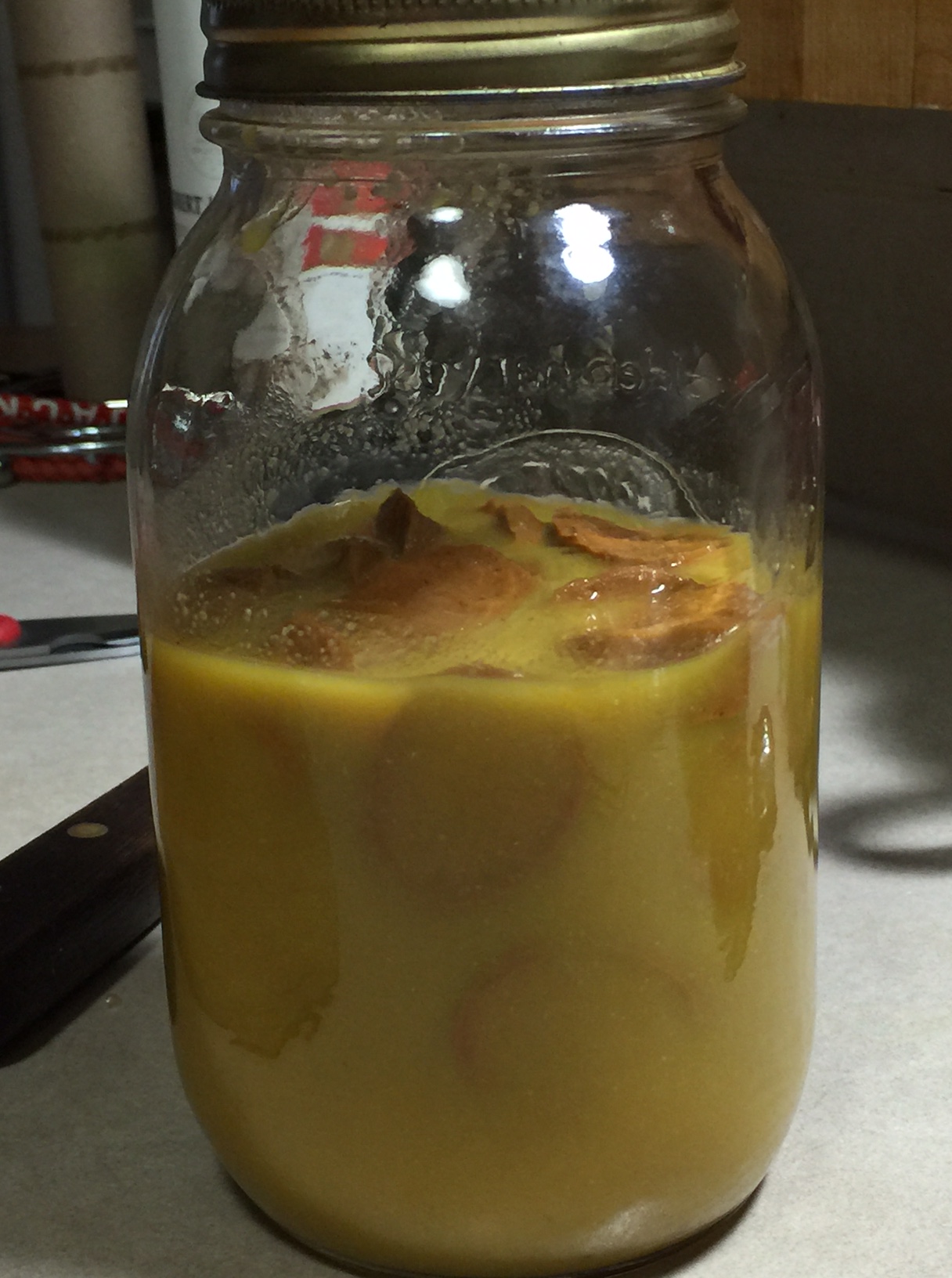 When ready to use: Strain contents of jar into wire mesh strainer over saucepan. Set aside frankfurter ovals.