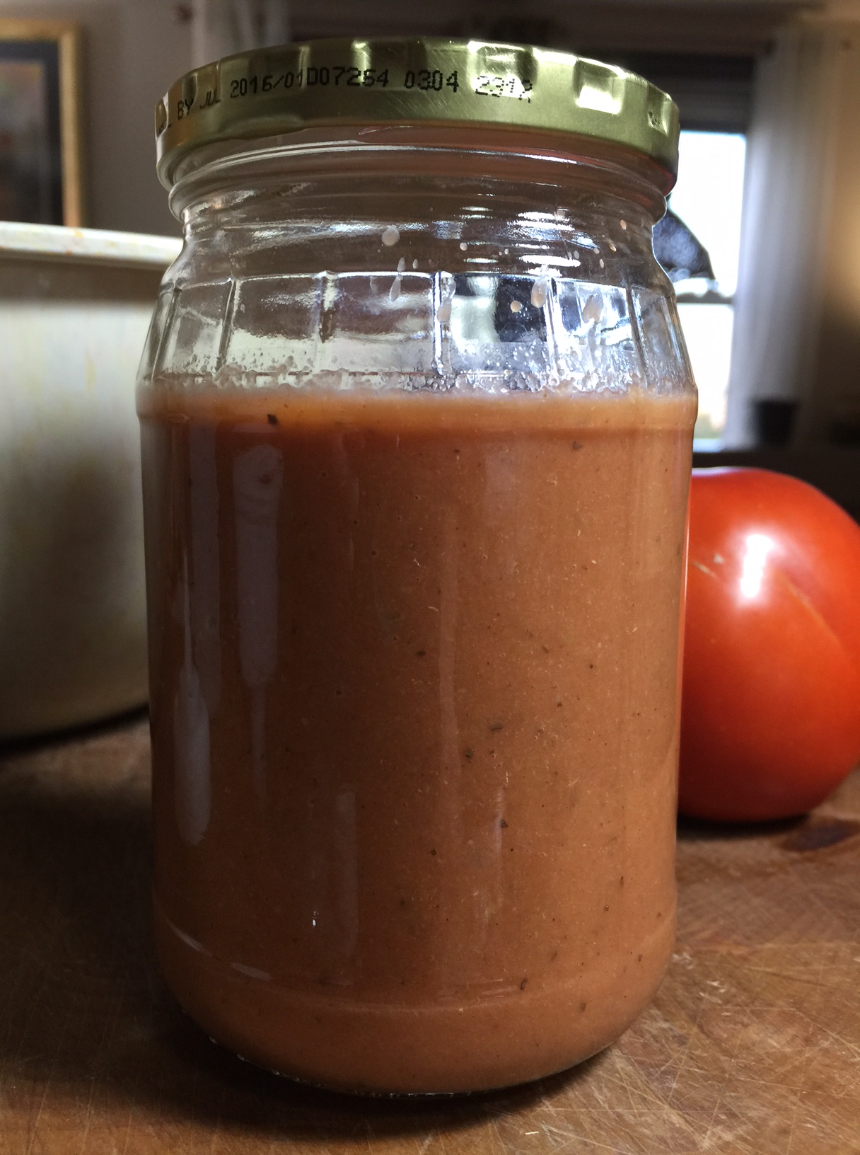 Just a tiny bit of oil brings the pureed solids to a happy place for the palate! The olive juice, ground fennel and liquid smoke help bring out the richness of the tomato, while the onion and garlic create a surprisingly fresh flavor quality, making one think it’s a fresh tomato dressing! Use over green salads.