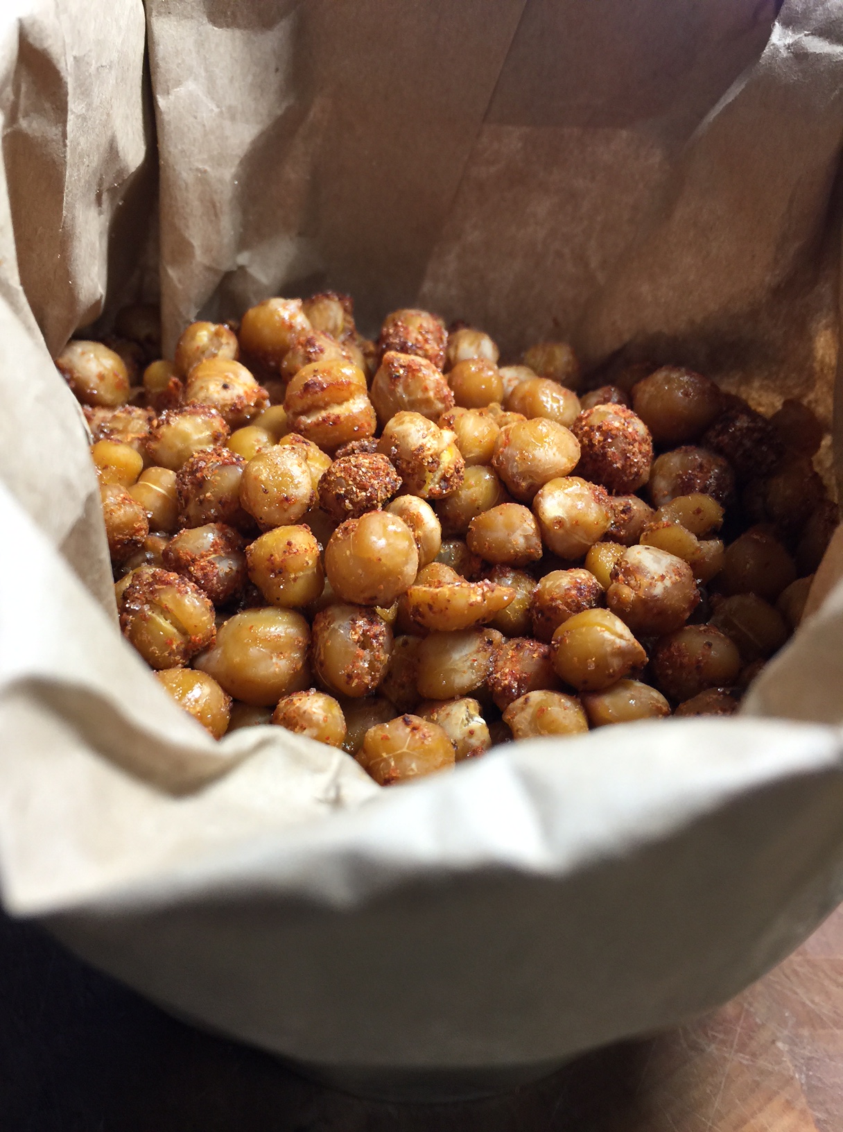 Add drained chick peas to bag. Close and gently shake and roll to coat peas with seasoning.