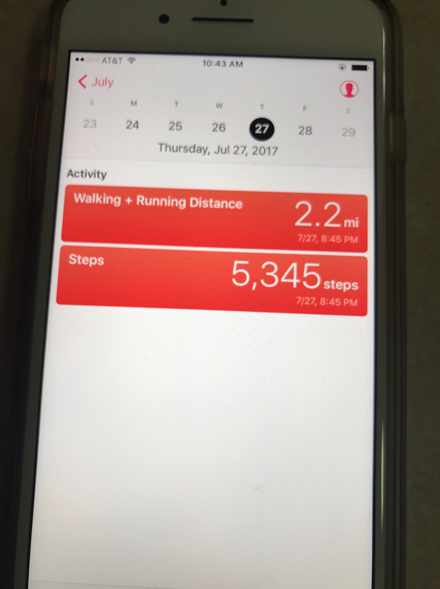 In July I walked a total of 48.95 miles and walked up 36 floors.