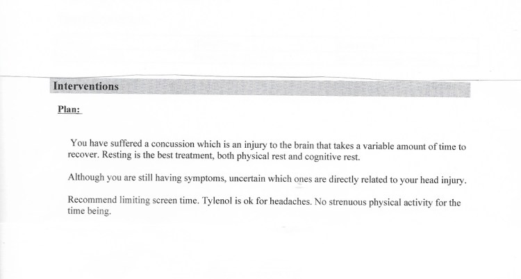 The concussion doctor said I was watching too much Netflix. How would he know what I watched? He wrote on his intervention notes for me to limit my screen time, to rest physically and cognitively. He said not to play any contact sports, where I could be hit or pushed.