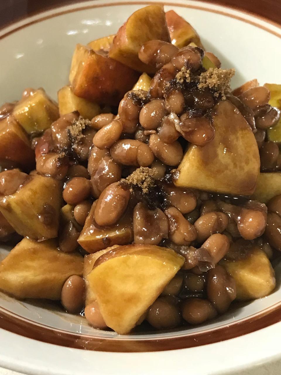 Combine in bowl apple, beans and Balsamic vinegar. Toss, then plate, then top with brown sugar.
