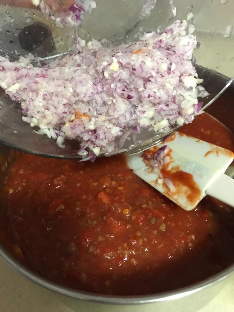 Place garlic and onion in food processor. Process till evenly mealy, but not mush. Transfer to large saucepan.