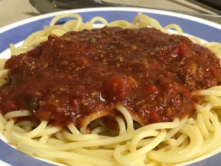 Totally fat-free and animal-free? Are you kidding me? Don’t tell anyone. Just serve it. It satisfies like ground meat and feels like there is definitely a fine oil in this fine sauce! Go for it!