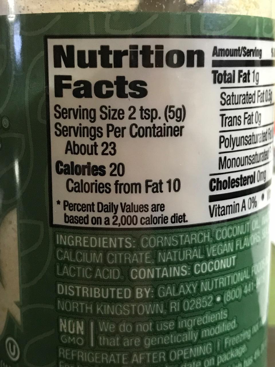 This shaker cheese is so low calorie and low fat that you could sprinkle it on everything – soup, salad, sauce, veggies, salad, sandwich, plant meats.