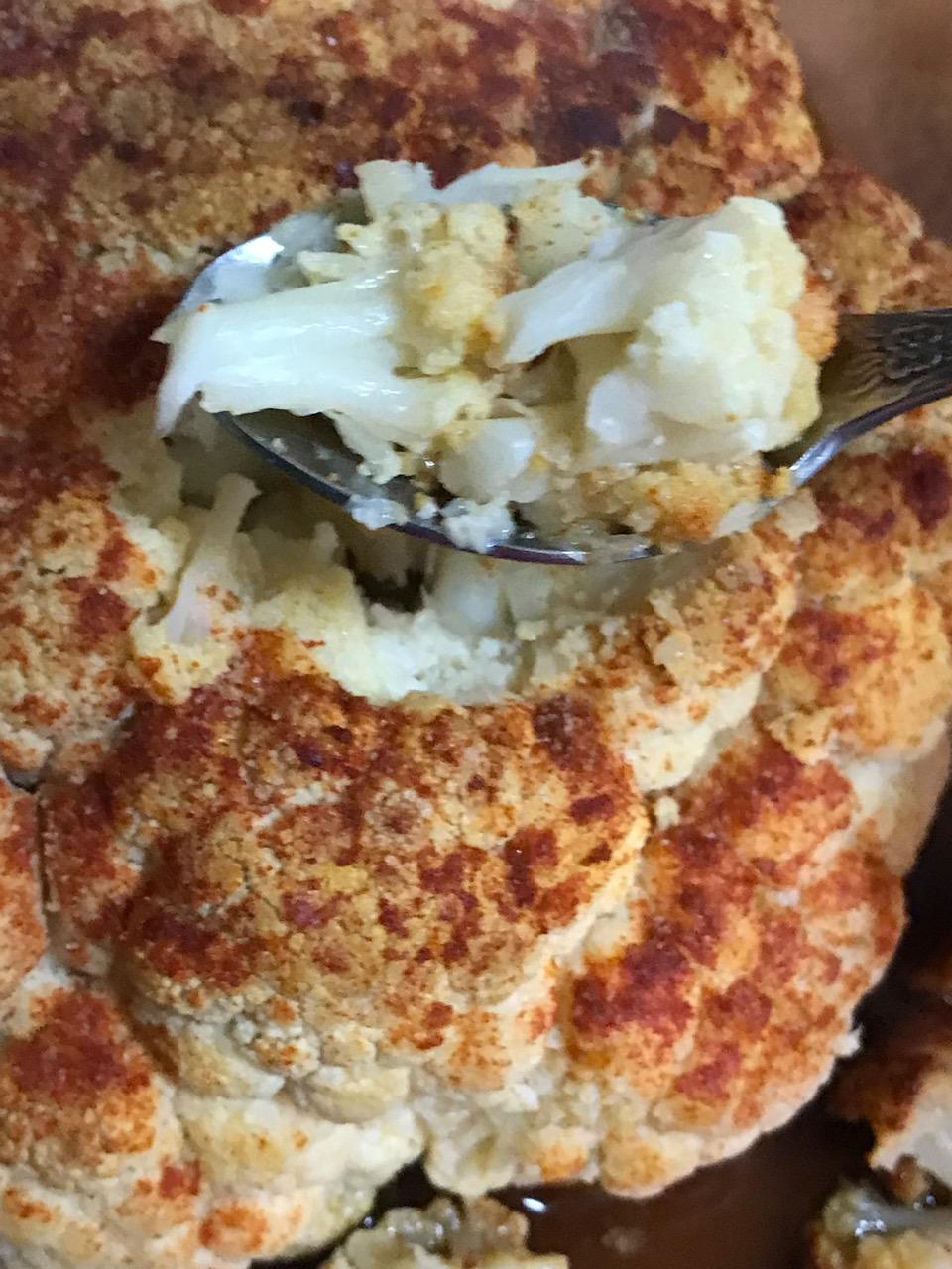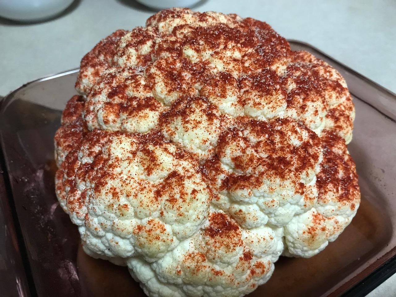 1 lg. fresh cauliflower, washed, trimmed, leaves and excess stalks removed flush with bottom of cauliflower and discarded