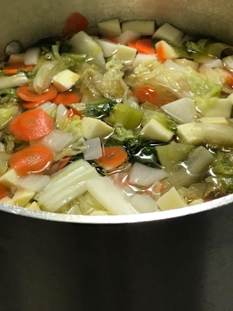 It’s called marinating the soup, so that the veggies have more time to flavor the broth. We don’t use oils or fats, so we achieve flavor results in whatever other ways we can.