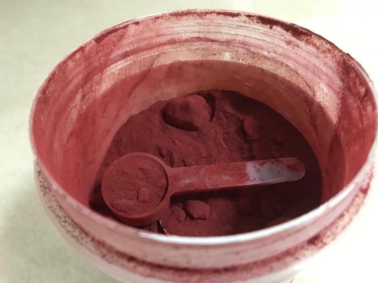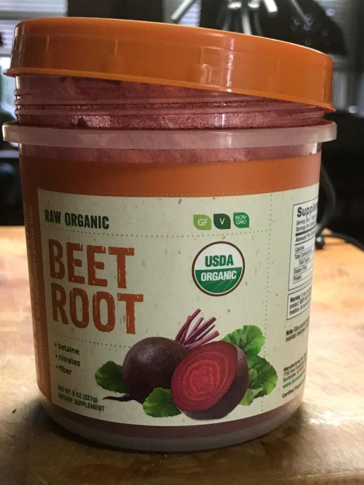 with 1/2 t. of turmeric, beet root powder, ginger, unsweetened cocoa powder, plus 500 mg. capsule red cayenne pepper – Cal. 10, Fat 0g