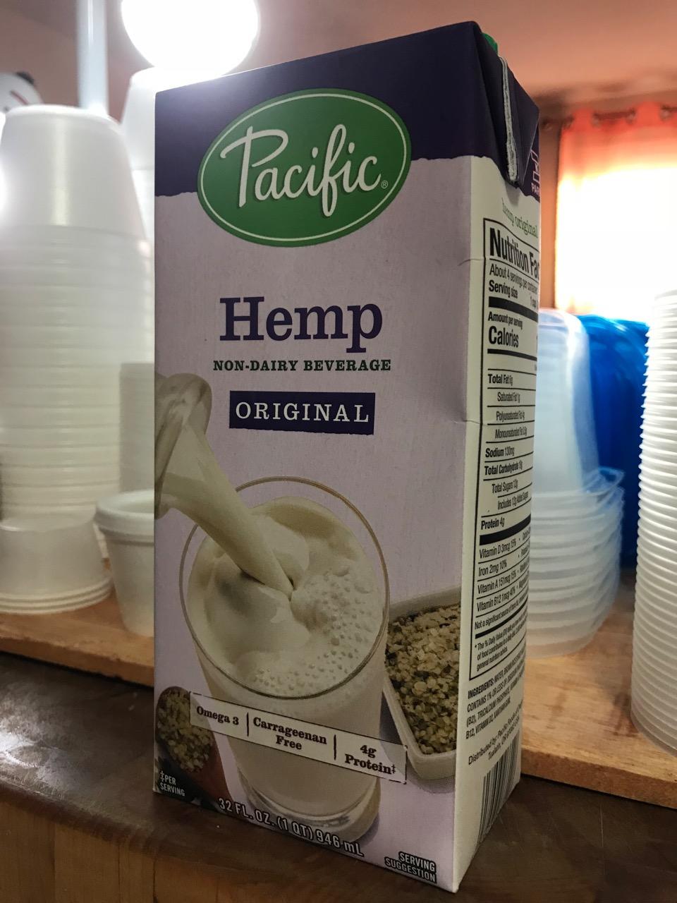 8 oz. Pacific brand nondairy Hemp Milk – Cal. 140, Fat 6.0g
