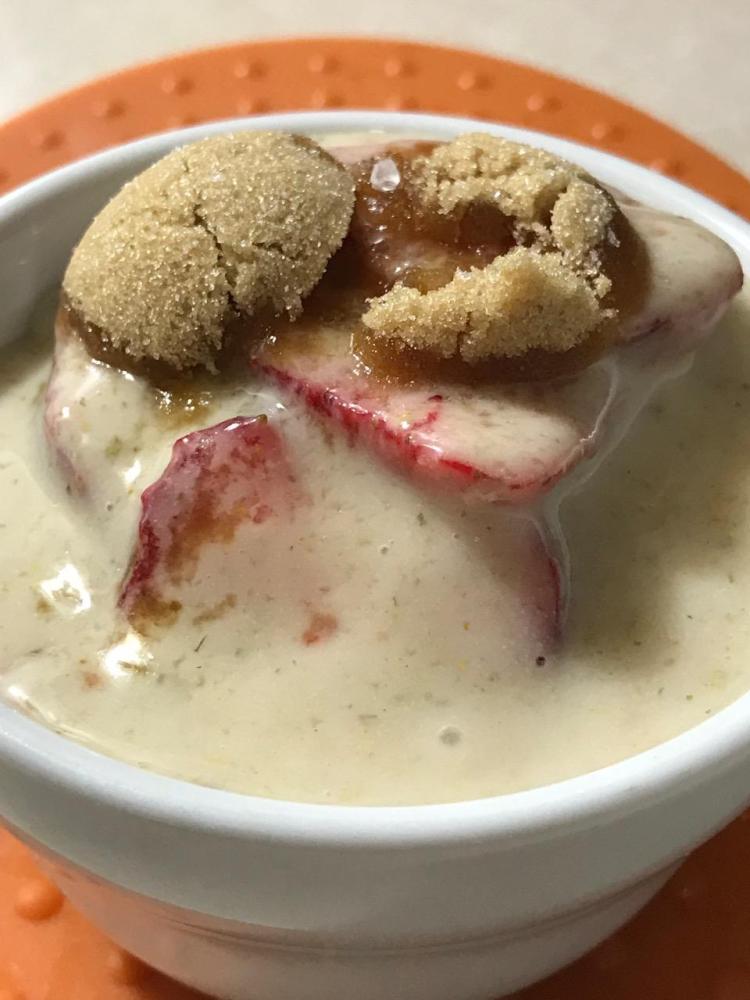 1/2 c. So Delicious unsweetened yogurt – Cal. 55, Fat 3.5g