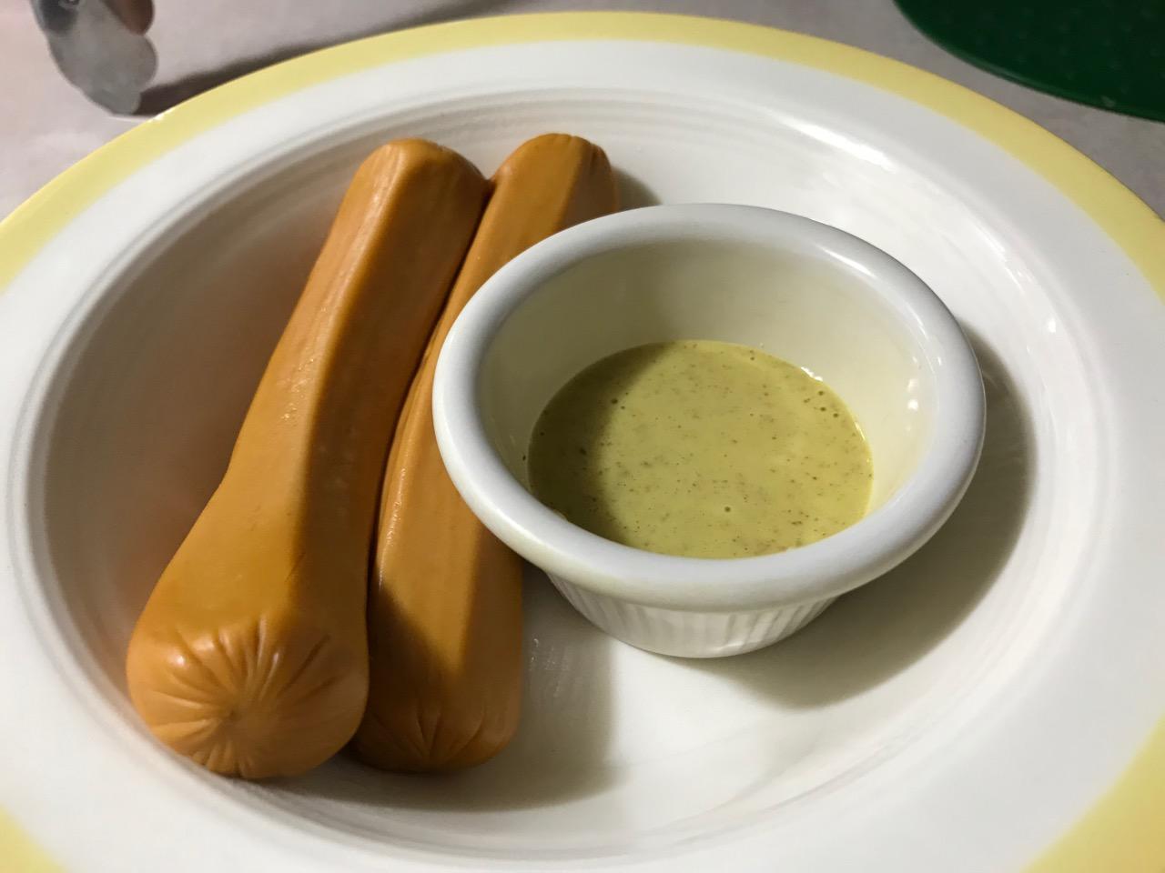 I ate the whole pack, 8 of them, throughout the day and evening with a combination of mustard, ketchup and prepared horseradish. They’re a filling food, I’m assuming healthy for me, and they’re only 50 calories, 2 grams of fat and 7 grams of protein per hot dog. Heat in microwave 30 seconds or boil in water till heated through or eat cold. This is going to be my diet food protein source staple. The cost is under 3$ per package.