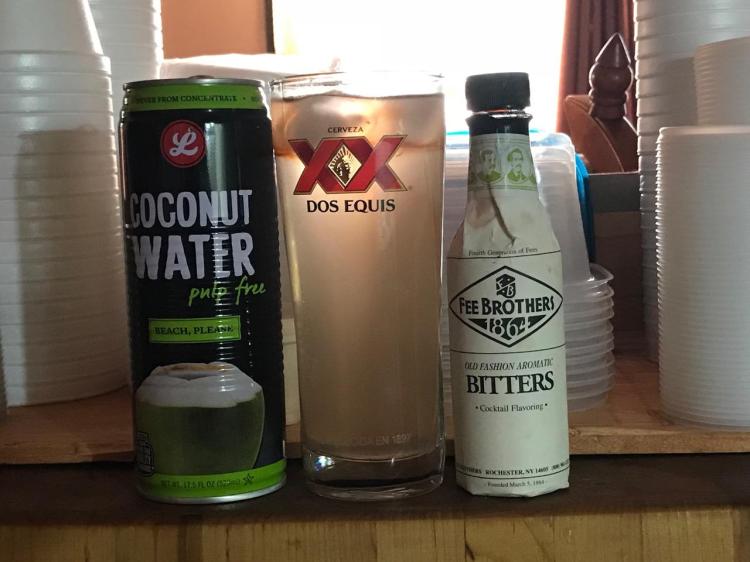 17.5 can Lucky’s coconut water w/2 shakes bitters – Cal. 100, Fat 0g