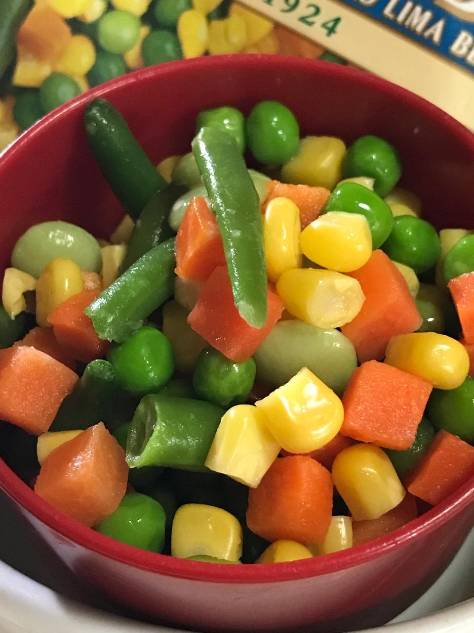 1 c. cooked froz. mixed vegetables – Cal. 90, Fat 0g