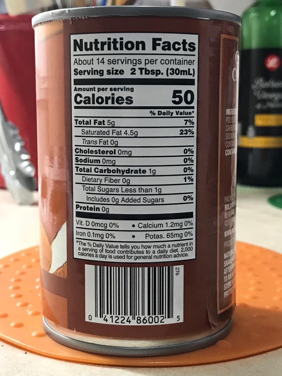 w/2 T. Roland Coconut Milk – Cal. 50, Fat 5g
