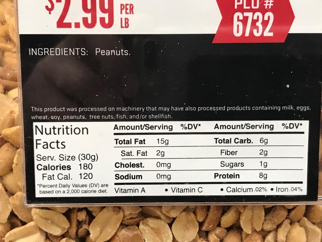 5 t. fresh grind peanut butter – Cal. 180, Fat 15g