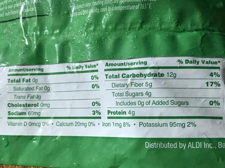 1/2 c. TOFURKEY ITALIAN SAUSAGE AND PEAS – Cal. 103, Fat 4g