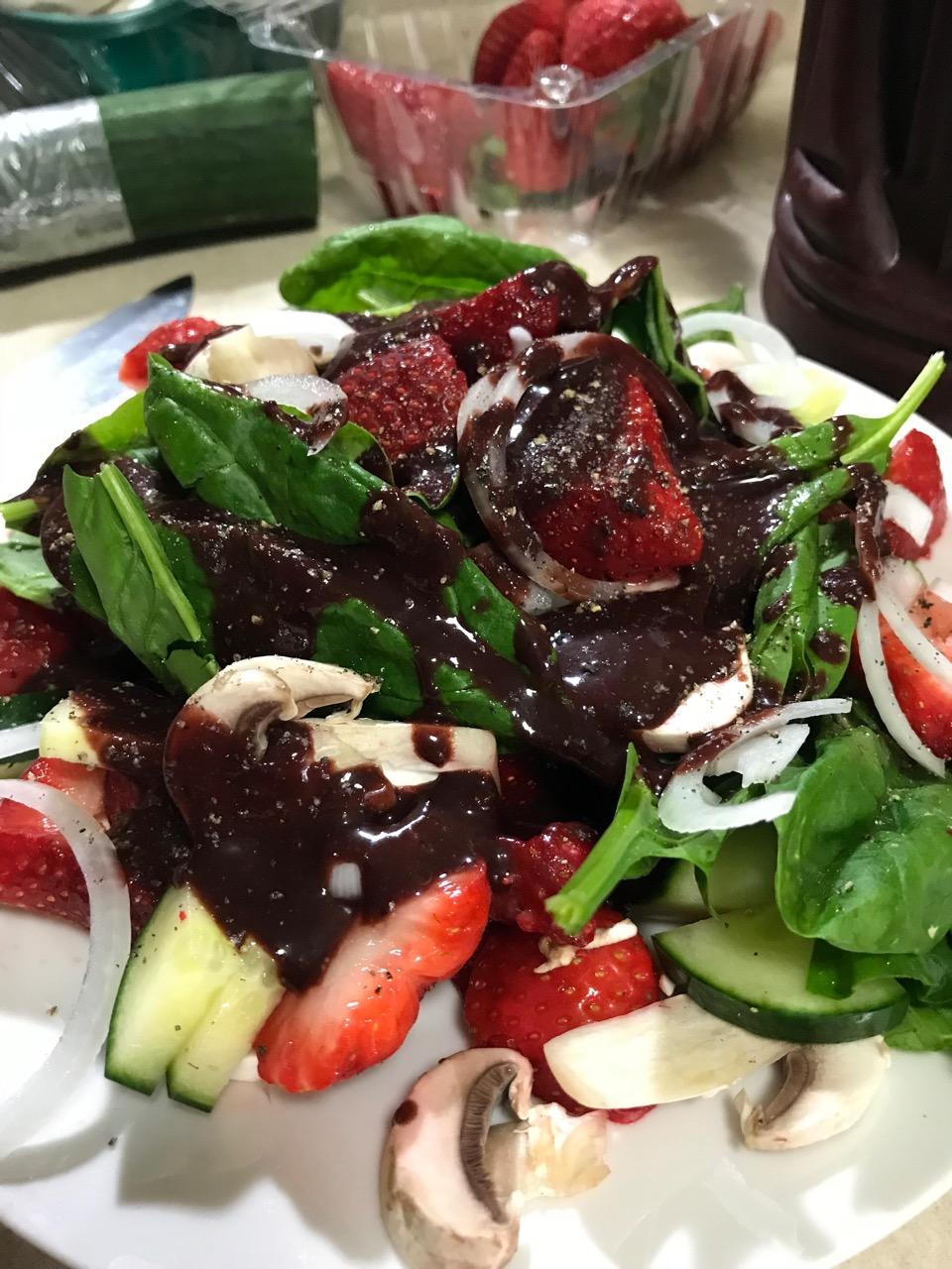 STRAWBERRY SPINACH SALAD W:BLUE & RED DRESSING (B&R blueberry roasted pepper)