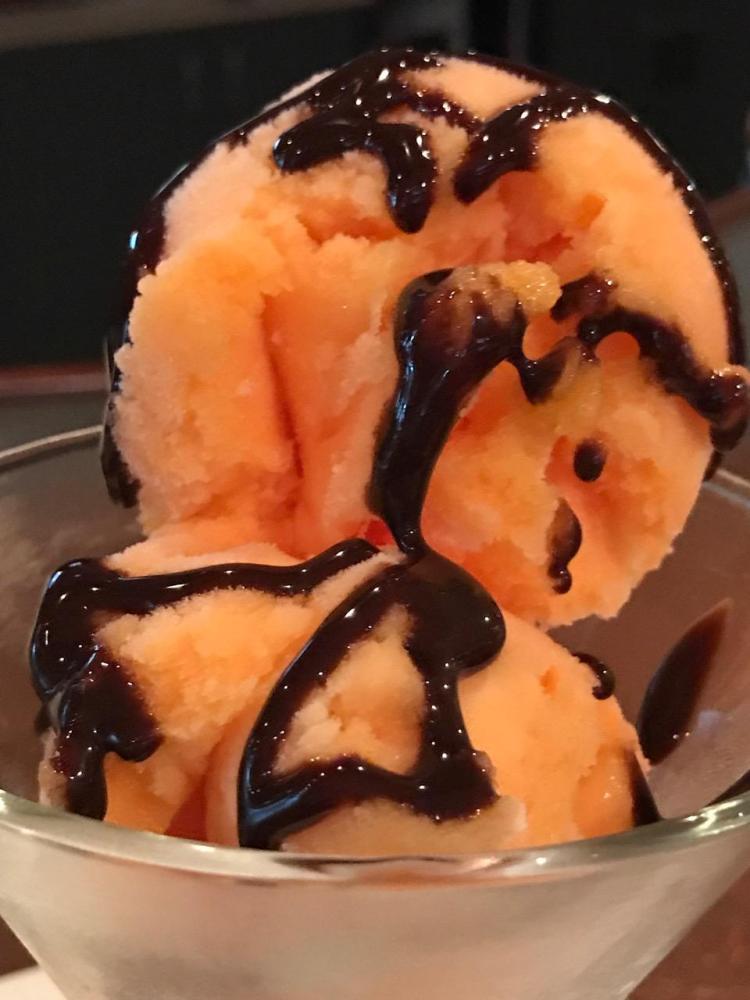 He knew they only served a vegan main dish for dinner, so called in advance and the chef said he’d be happy to make it for lunch. I was in animal-free heaven. I’m so accustomed to eating side dishes prepared by people who don’t want to prepare anything absent the animal. This was a joy. The service was beautiful. The wine excellent. It’s been a while since I had a Vouvray. Even dessert. Vegan? Yea! Tripe orange sorbet. Once I discovered they had chocolate syrup by Hershey that was vegan I was all set. A shot of the Vouvray over the sorbet and chocolate was divine. A perfect meal that deserved a congratulatory comment to the chef face to face.