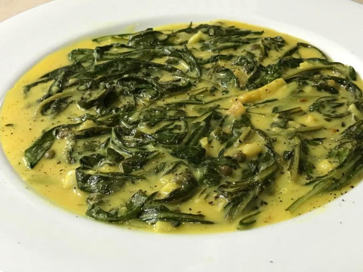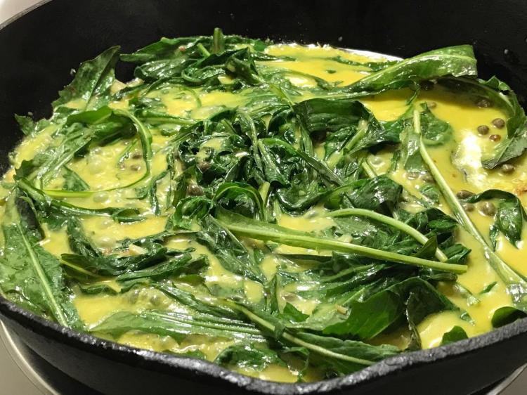 I threw them out. They were unchewable greens. I don’t doubt that they were dandelion greens, just not what I expected. These photos I took made them look good enough to eat, but the tender chew was not there. The simple recipe I developed for the mustard sauce I will use with some other greens, because that was excellent.