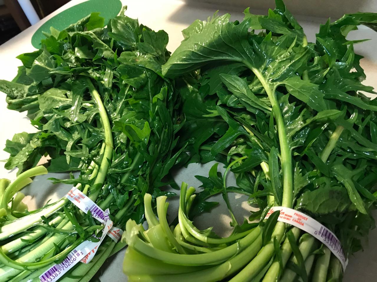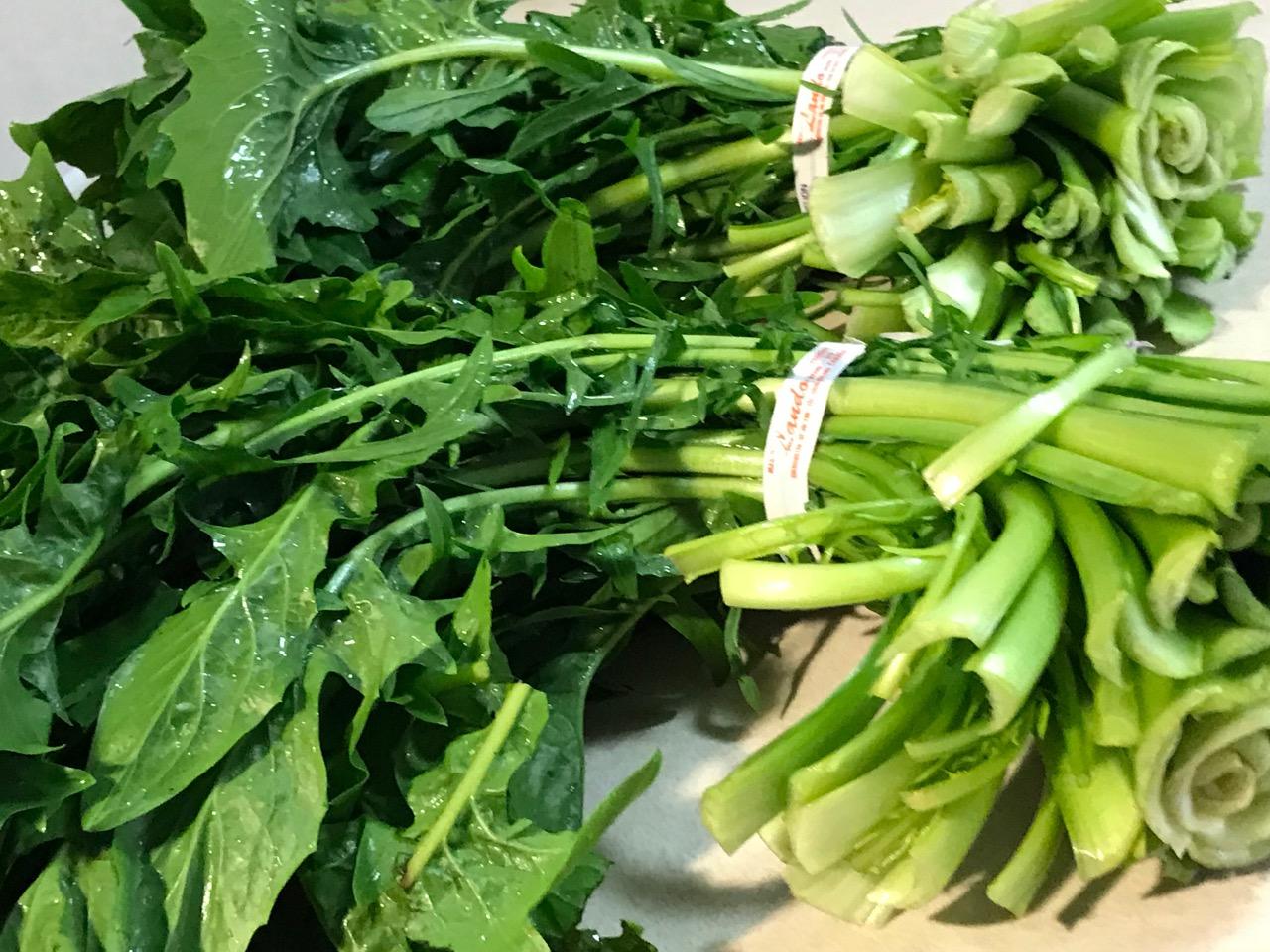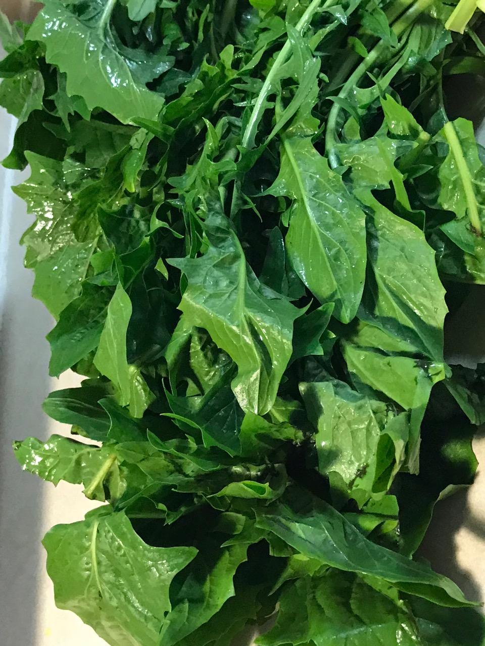 So way sooner than anticipated, I had 2 bunches of dandelion greens in Steve’s cart. I said I didn’t need a cart today. I was just window shopping. Huh, he probably thought. He likes to separate carts so he can keep track of what he’s buying and spending. Not that it in the end it makes any difference.