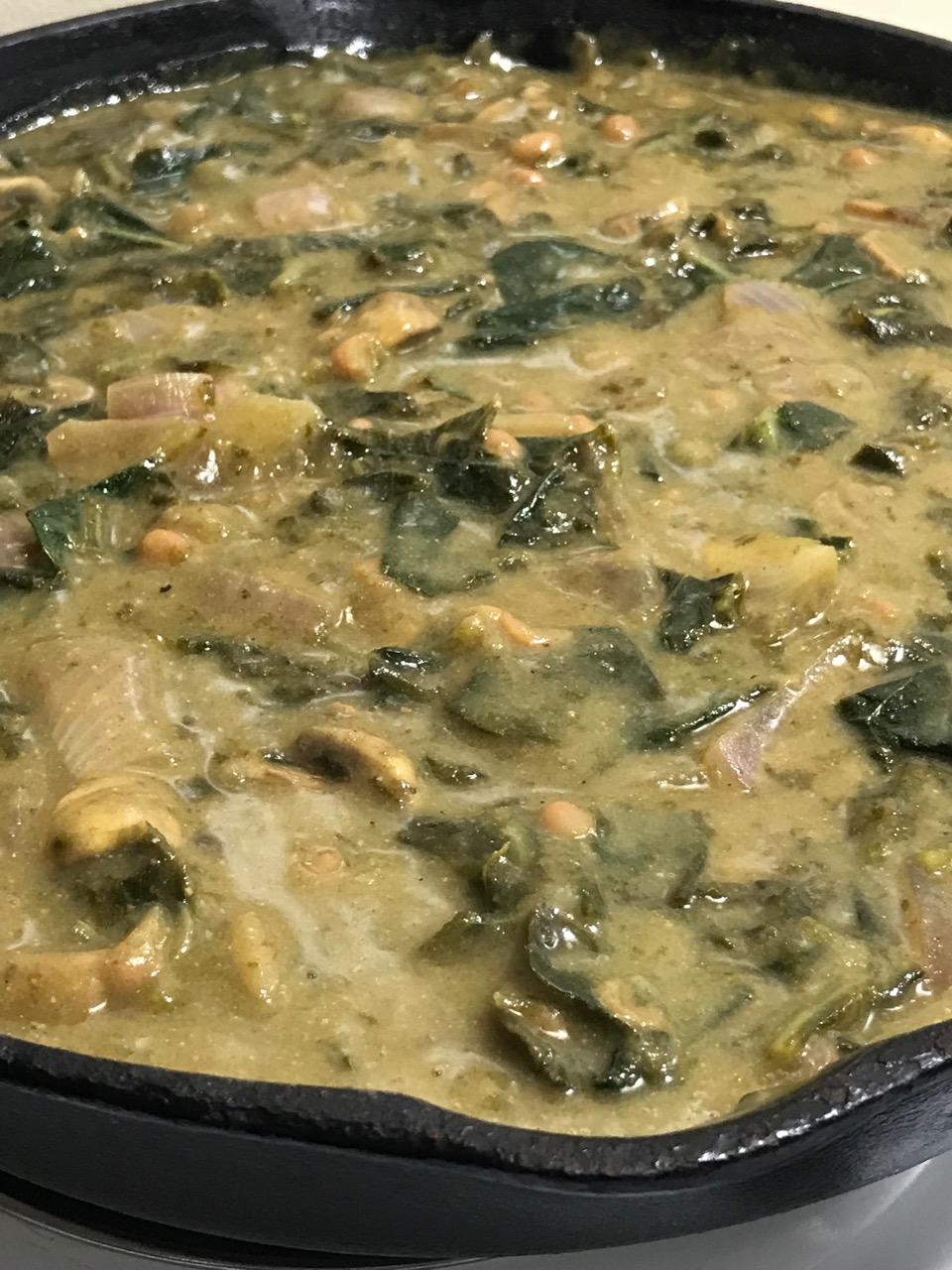Variation: Fry up a package of veggie hot dogs or veg sausage, slice into disks, then add to the greens and beans, and heat through. Serve with potatoes or rice and a side salad to make a large meal.