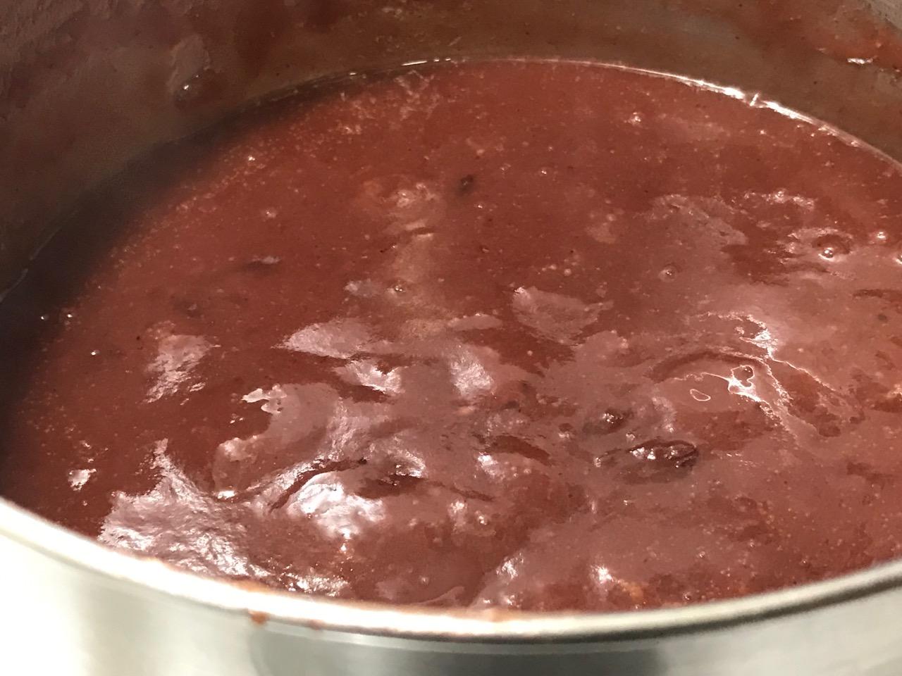 Combine all ingredients in large saucepan. Cook over medium heat, stirring to melt the jellied cranberry sauce till smooth as possible.