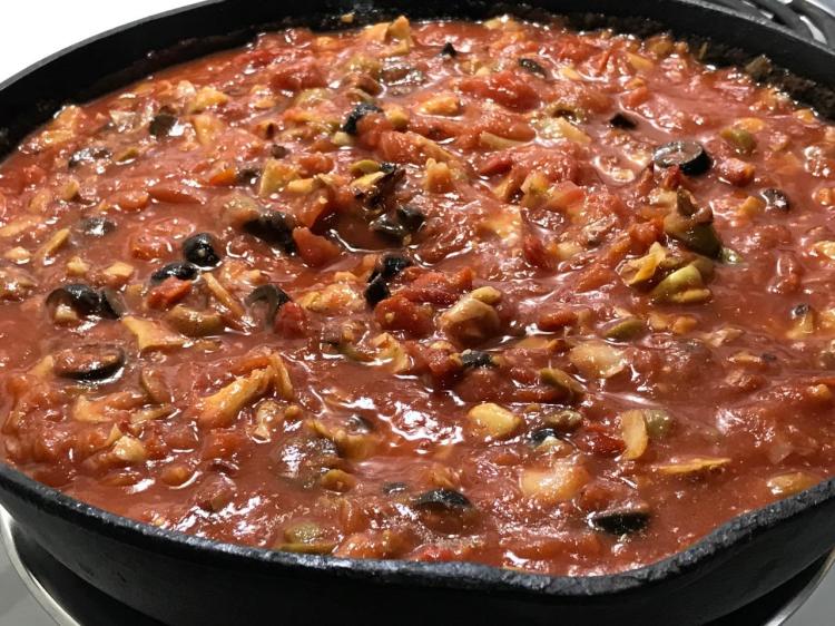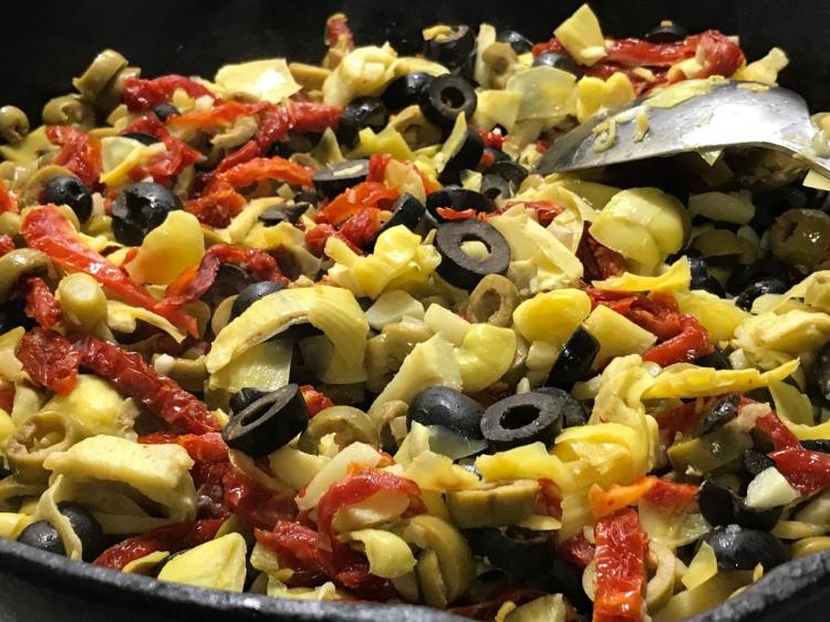 Artichokes, black and green olives, sun-dried tomatoes, lots of fresh garlic and ginger simmered with nothing better than San Marzano tomatoes! Fat-free, except for a negligible amount found naturally in the olives.
