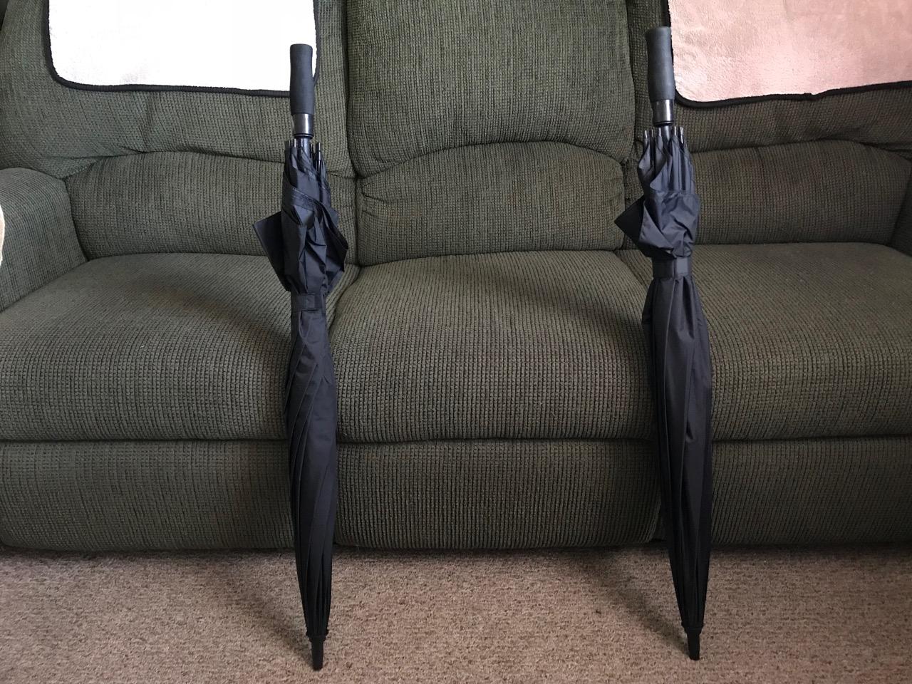 So what does this old goat do? Puts two long umbrellas to good use. I don’t always use them as spotters. However, when I’m a little off balance and I still want to squat, these allow me to do way more than if I had nothing.