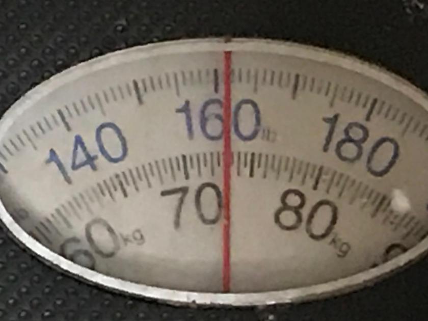 Aside: Although the dates on the scales are a month apart, I had every intention of losing more, so didn’t photograph after I lost the 7 pounds.