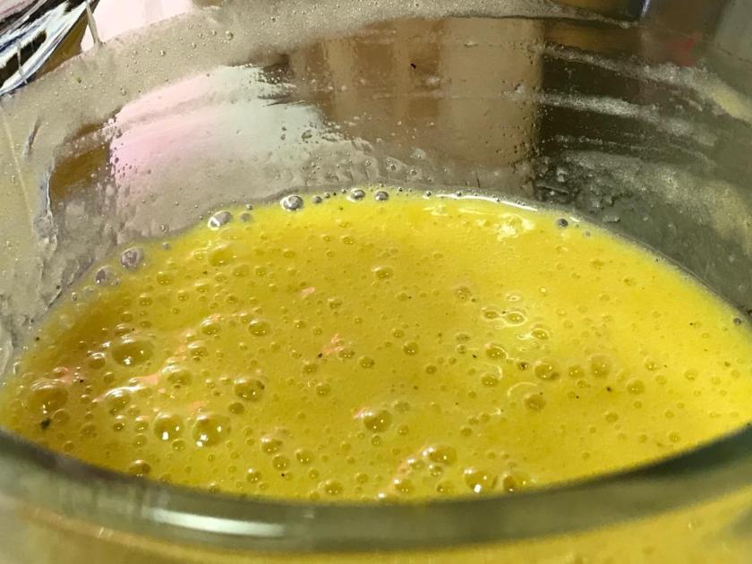 Add vinegar, salt, nutmeg, turmeric and black pepper. Blend till smooth on high speed.
