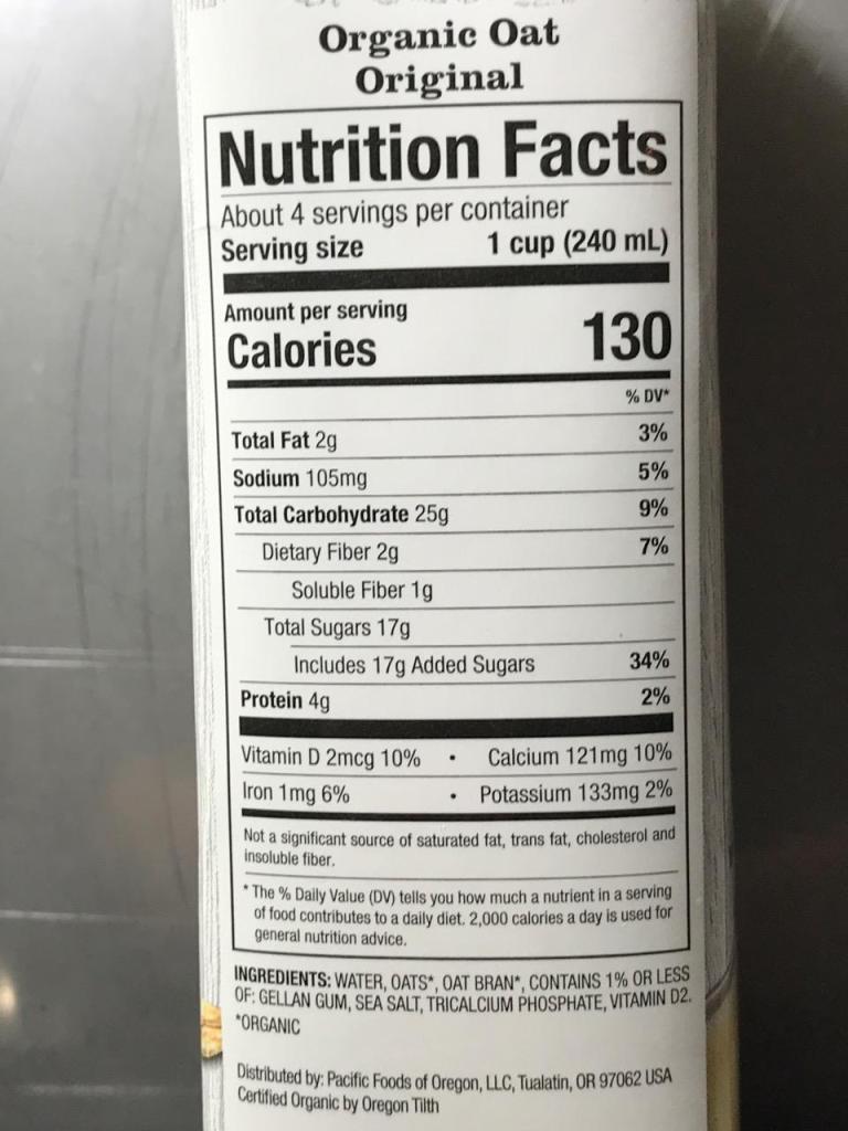 1 c. OAT MILK ORIGINAL by PACIFIC FOODS
