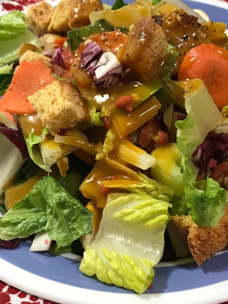 Looks like a lot of ingredients, but mostly seasoning and flavorings go into making this fat-free dressing as special as it is! Deep, dark, bold, complex! Like a full-bodied fine wine, it possesses elements that give it an aged flavor! Use over salad or dessert!