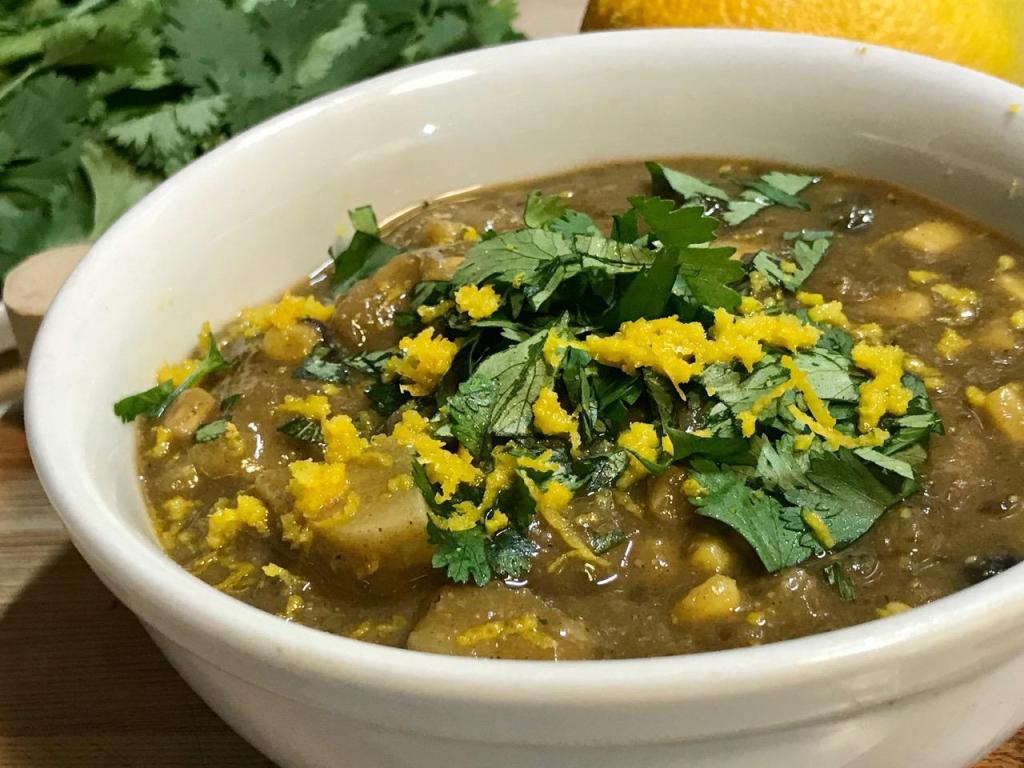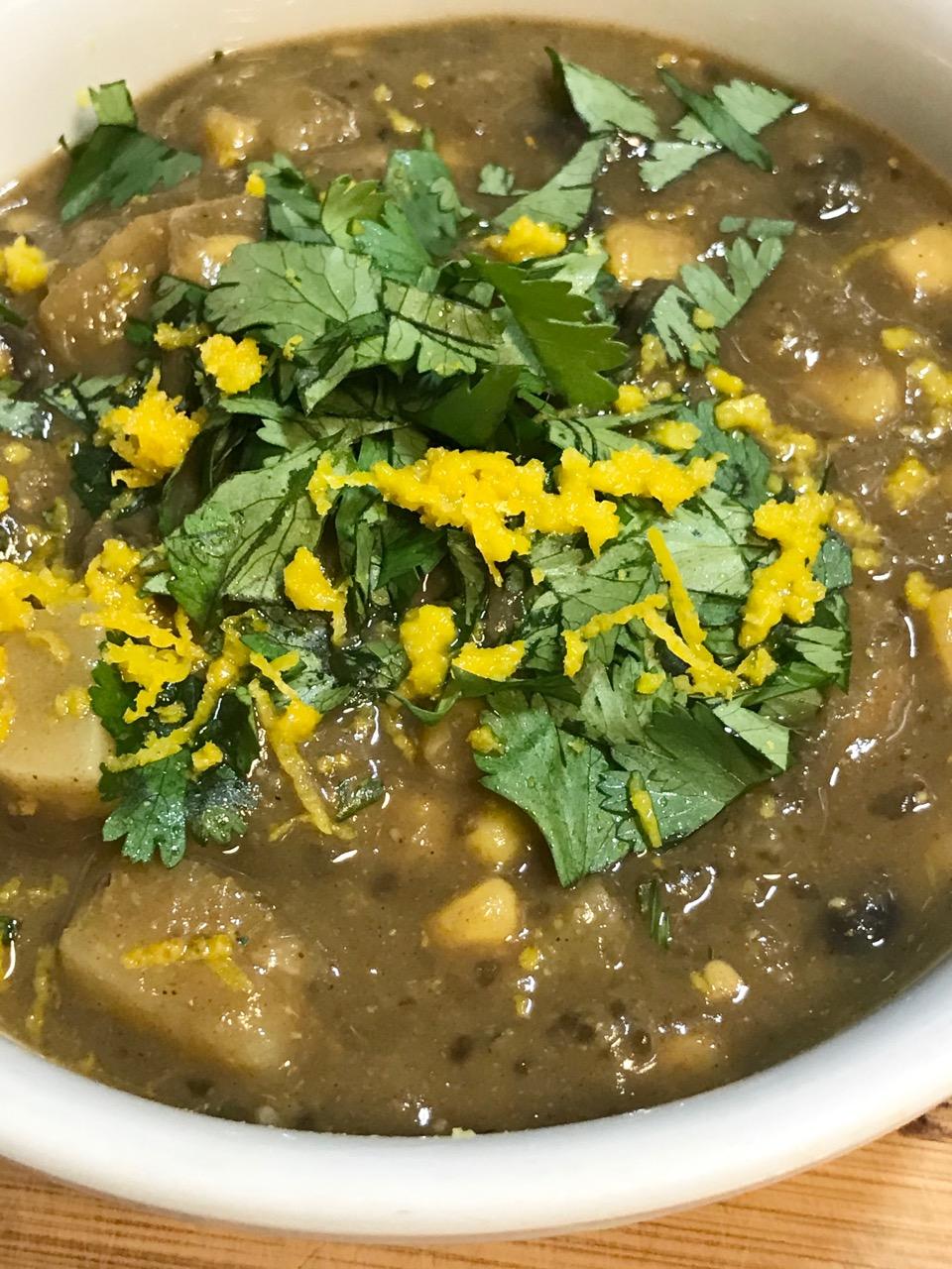 Kraft dried Minute Tapioca creates the fatty mouth feel in this hearty fat-free soup. Sporting an elegantly artistic flavor arrangement, I’d say it’s an exciting blend of Indian, Spanish, Italian and French!