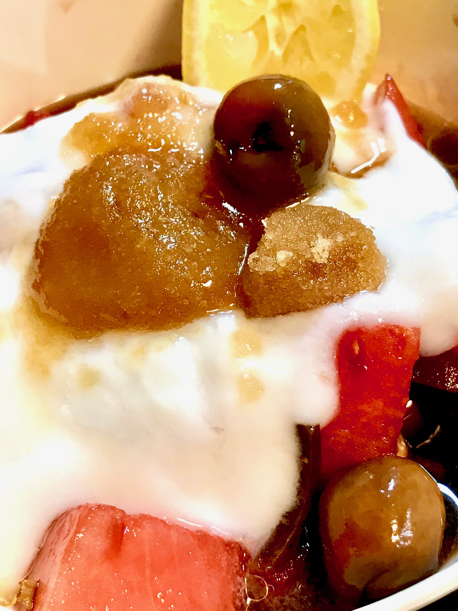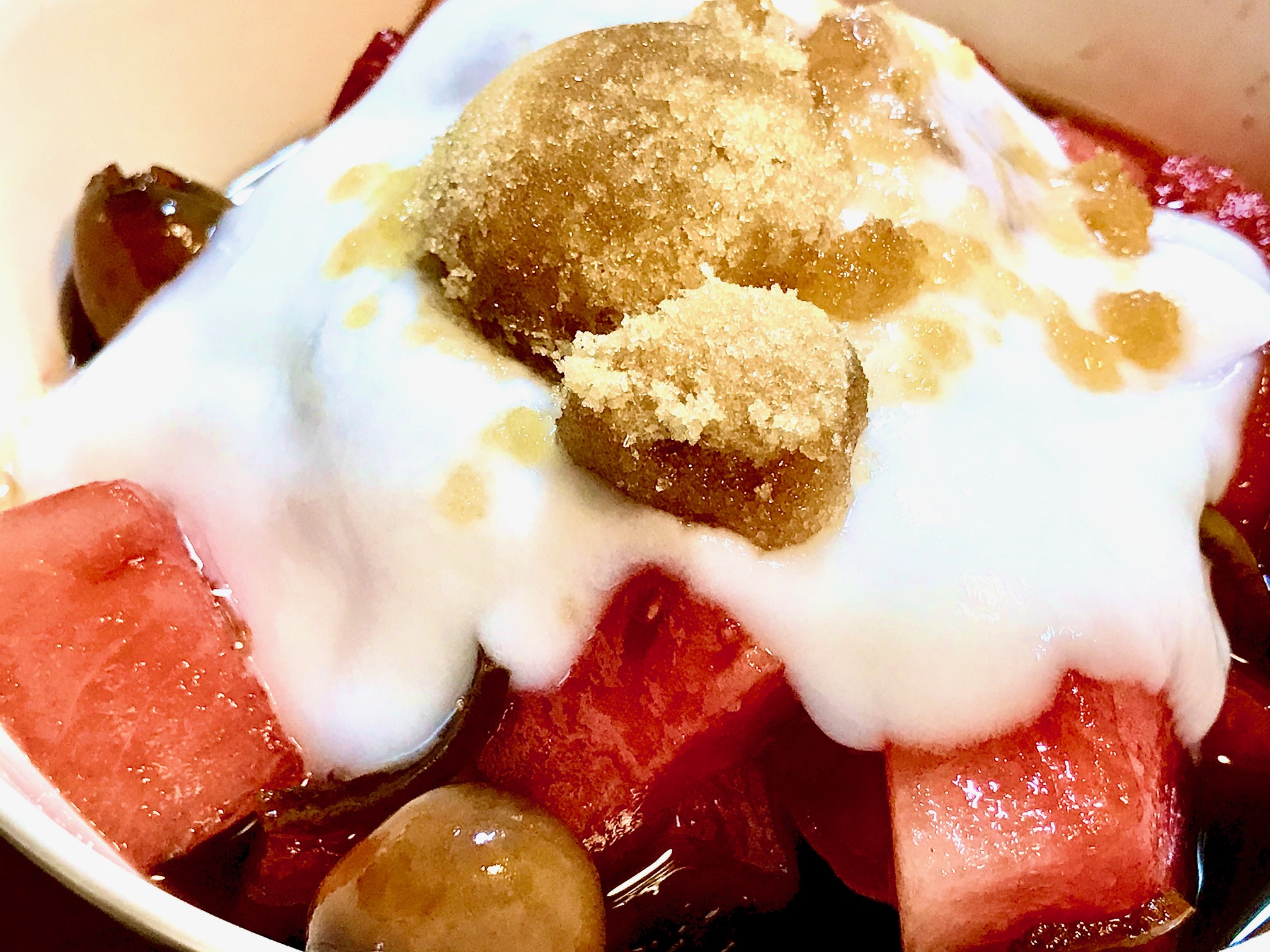 Topped with plain plant yogurt, brown sugar, fresh lemon squeeze and a few drops White Truffle Oil! Exquisite, with or without the truffle oil!
