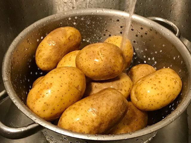 Cook up five pounds of these tender creamy golden thin-skin potatoes and chill till ready to use in various recipes. Today it’s a potato pepper fry. We keep the fat low and the flavor high! Rich!