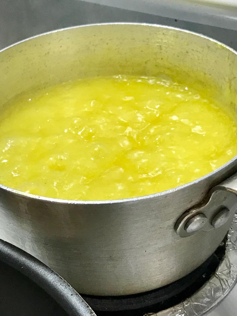 3- Place strained pickle juice in saucepan plus 1 cup water and bring to soft boil.