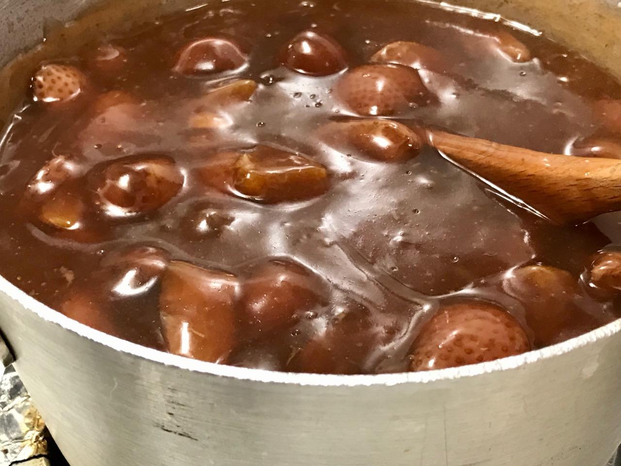 Notes: Since I already ate this morning I’ll start the ONE WEEK FLATTEN STOMACH CHALLENGE tomorrow. RUMTOPF CHERRY PIE – that’s what I ate – only one slice. I know, I know how it sounds. But I developed the recipe over a few weeks while waiting for the cherries to marinate in rum for another cooking site and I just had to have a piece when it was ready (jelled in refrigerator overnight). Wow, it was worth the wait. Yup 5 AM and I was up eating RUMTOPF PIE.