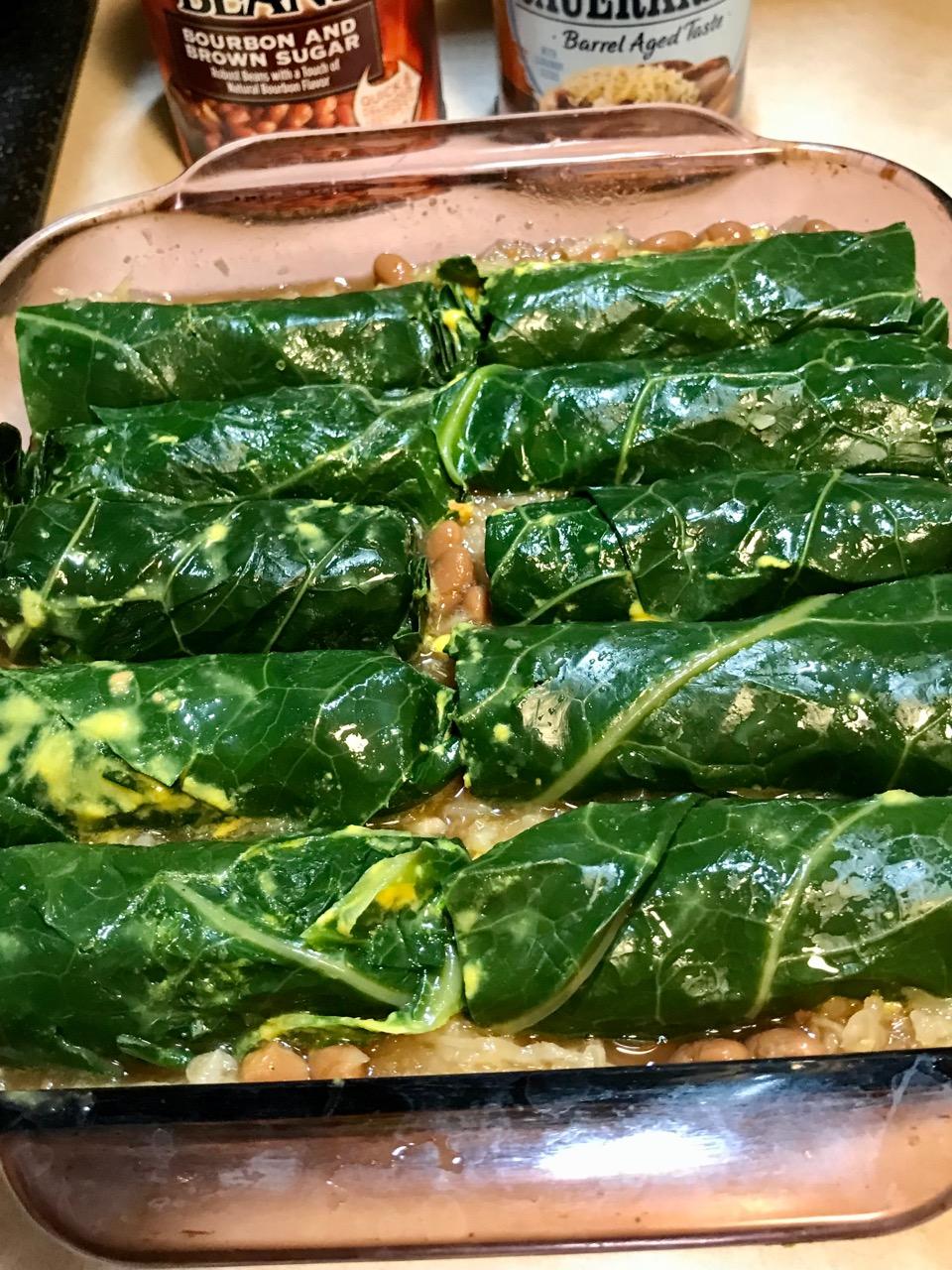 dinner – Veggie Collard Dogs Kraut And Bourbon Beans