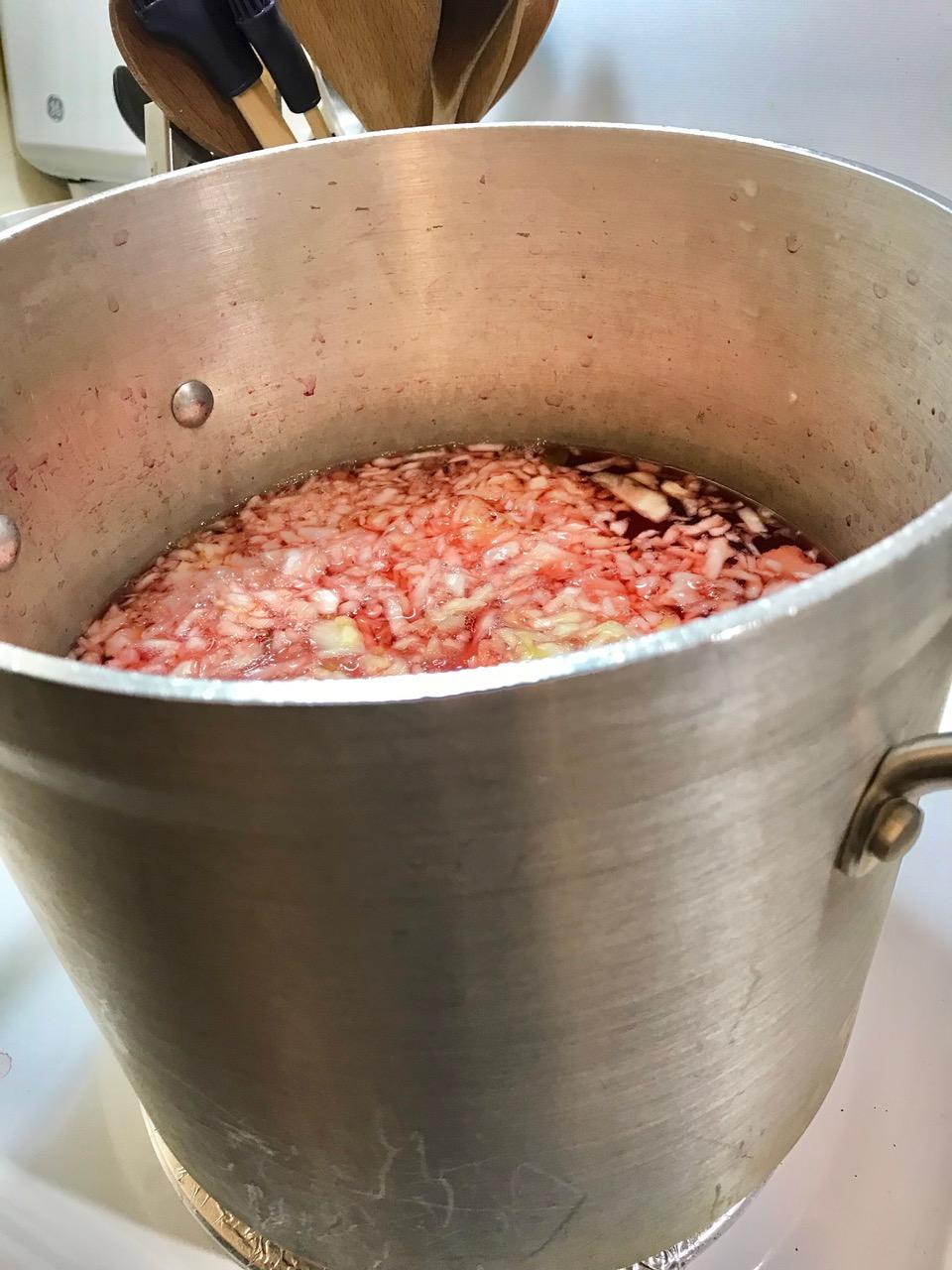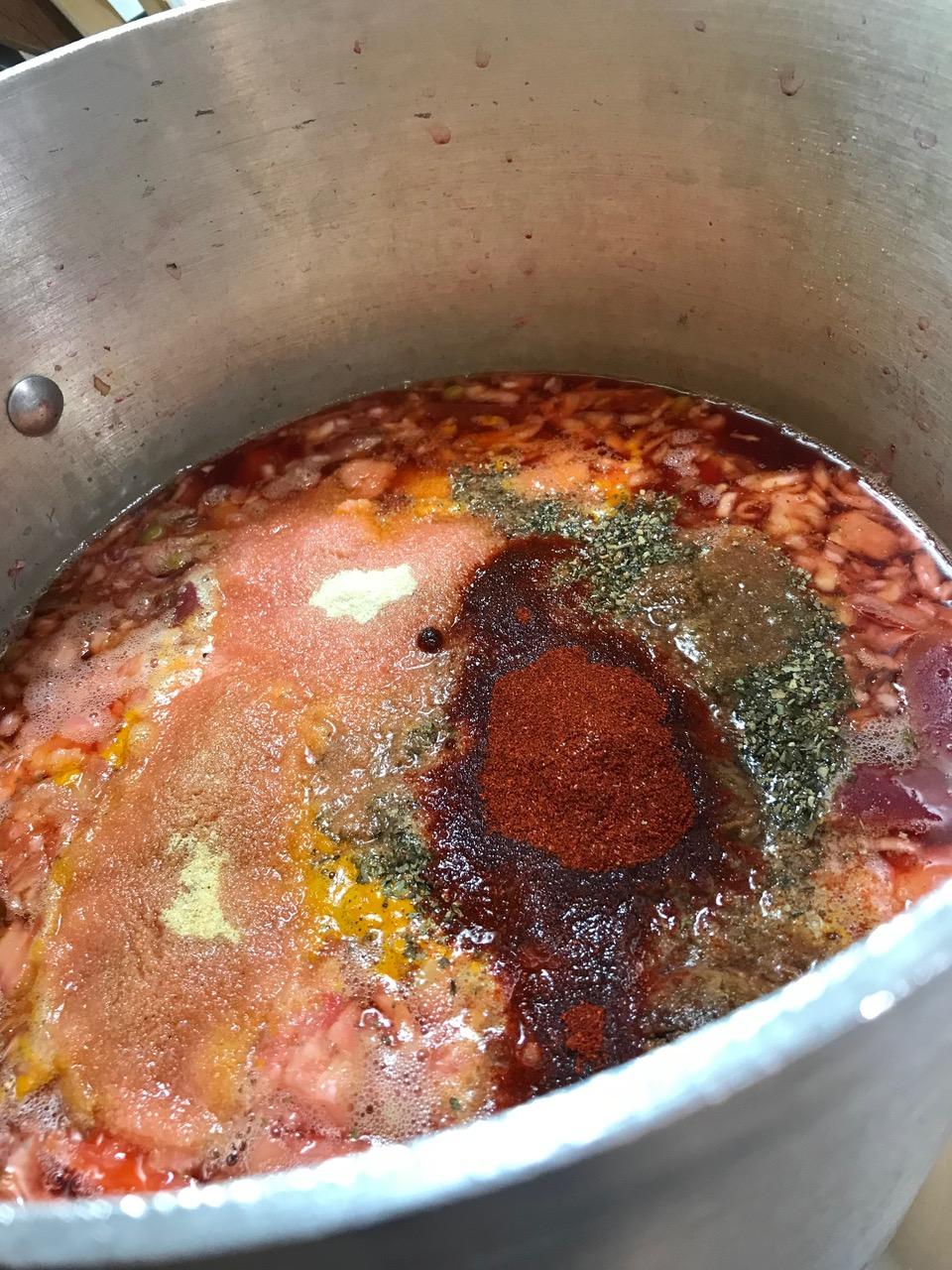 1- In extra-large soup pot, over high heat, place all ingredients, stirring after each addition.