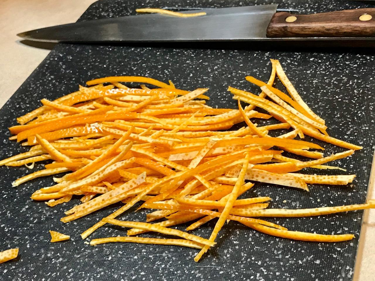 The flavor, however, of the orange rind was so strong and pleasurable, that now that’s what I’m going to do with any oranges he brings home. PICKLE THE THE RINDS – not your traditional pickling process, but just enough water and vinegar to retard spoilage when refrigerated.