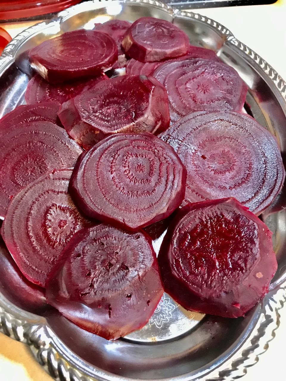 approx. 5 large fresh beets – cut off ends, peel and cut into 3/8 inch thick beet steaks