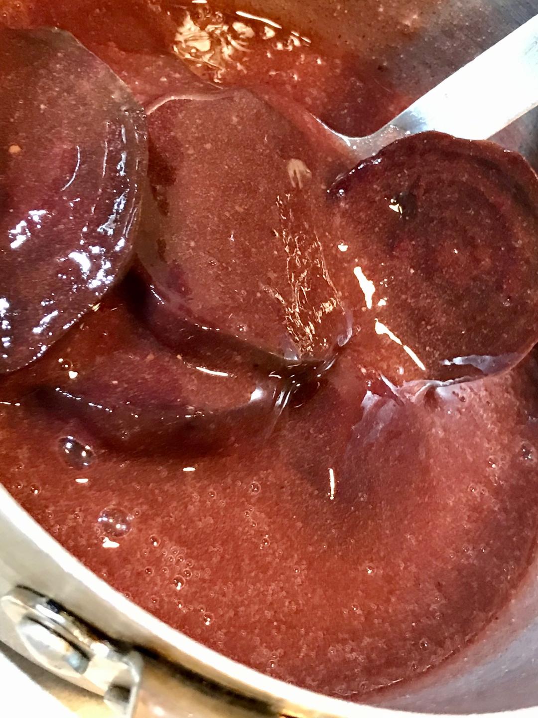 9- Add beet steaks to sauce. Raise heat to medium and cook till heated through or longer.