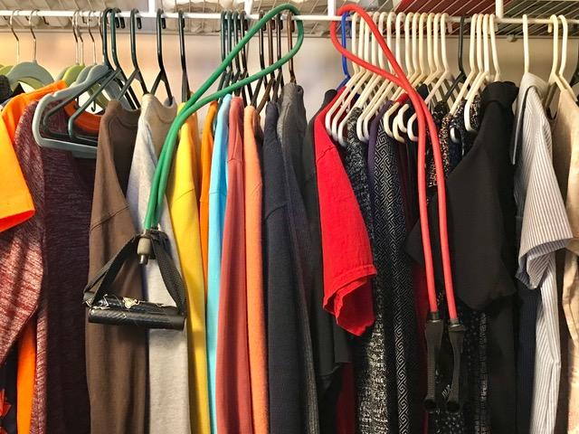 I have two cords, red and green different resistances, in the closet hanging over the clothes rack which is a perfect place, since the rack is super-secure. I don’t do long distance; I get up close. Working in a small space on my total trunk. I don’t spread anything out. Lanky, which I am, is not well-suited for that.