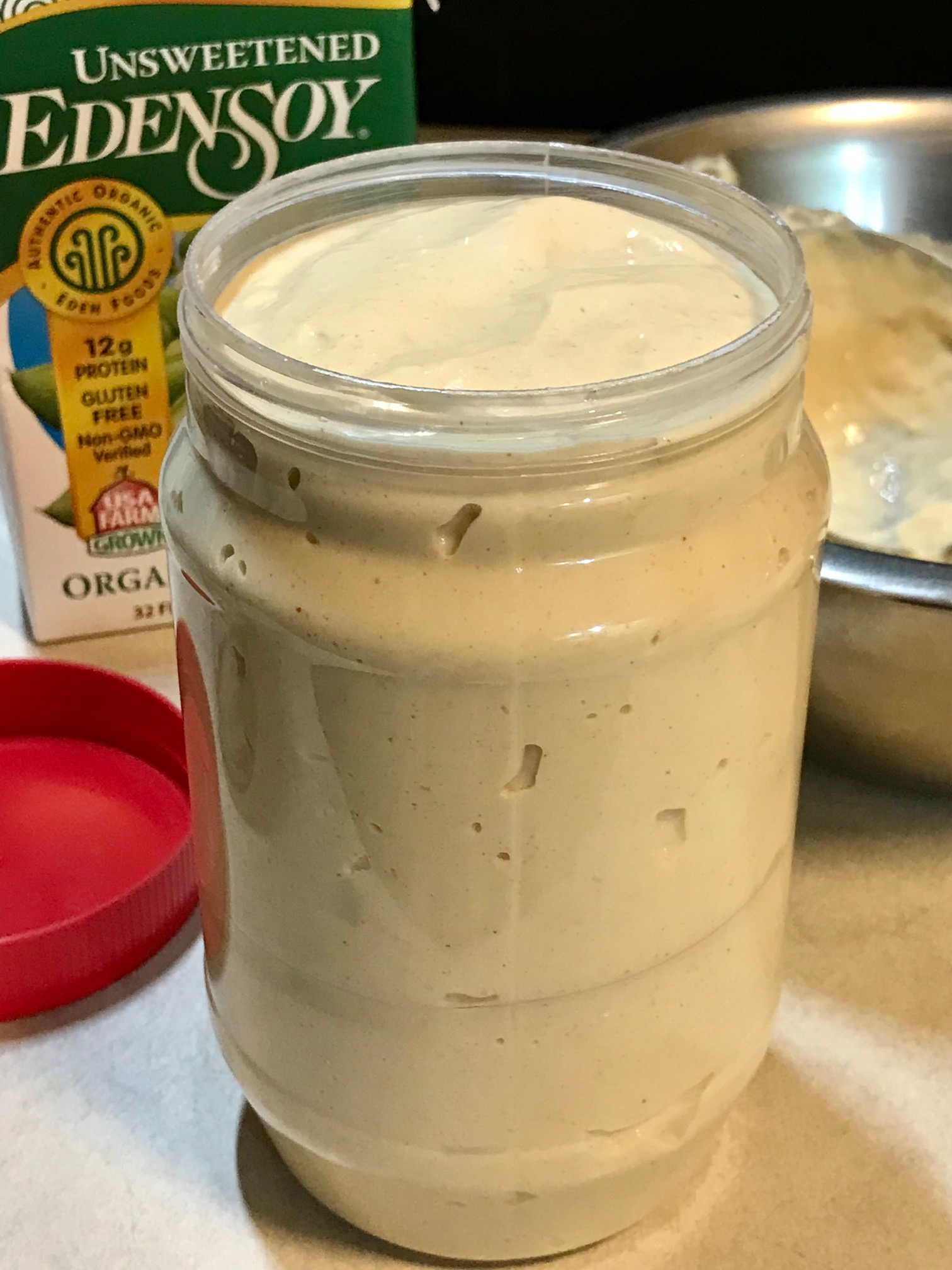 Now, the only plant milk I tried with this FLUFF MAYO was EDENSOY UNSWEETENED SOYMILK. I’ll be trying others. It can be bought online @amazon or store.edenfoods.com.