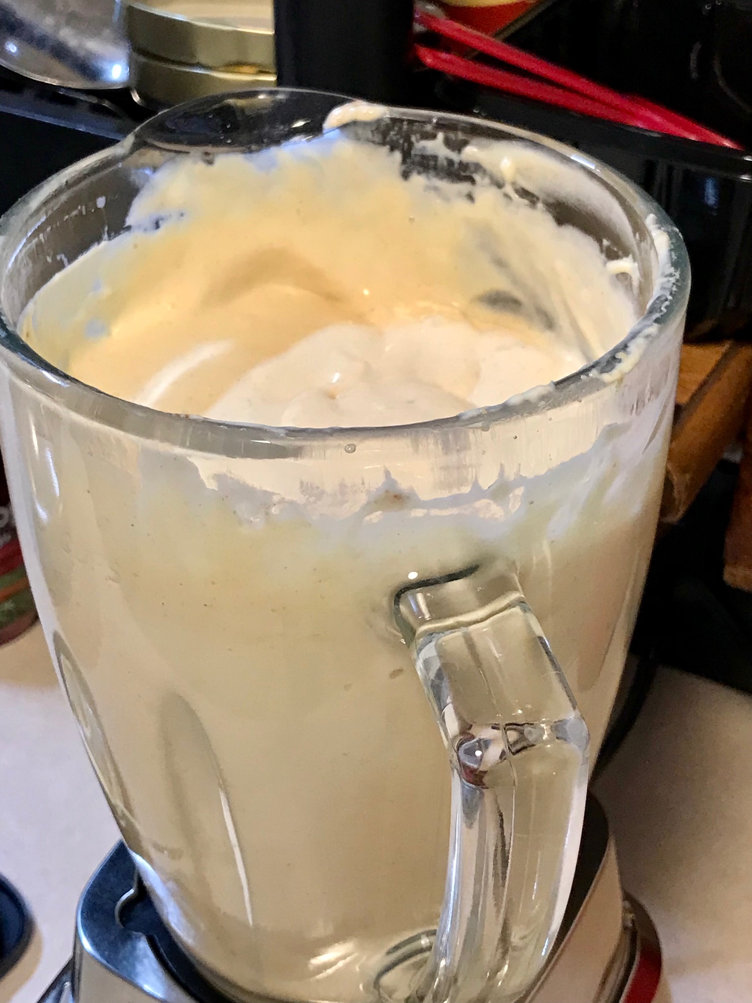 - Letting mayo set for 20 minutes to then blend again is an important step. It thickens while it sets, then you want to aerate it again, okay?