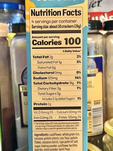 Lots of fiber too; these are not melt in your mouth crackers, like RITZ.