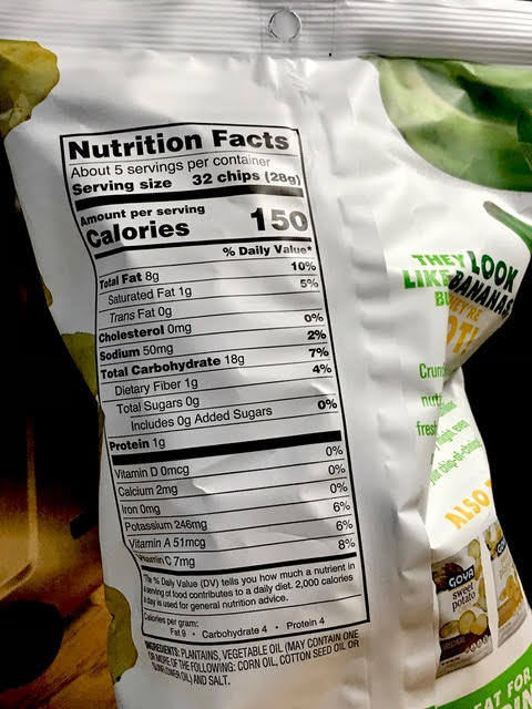 So what’s with the PLANTAIN CHIPS that were good enough for GOYA to take them on? I’m a potato chip person, plus I can’t eat crunchy right now with my gums, so to speak, however Steve brought these home for me to try, not knowing anything about them, except that I had fried plantains at a local lounge a few days ago and liked them.