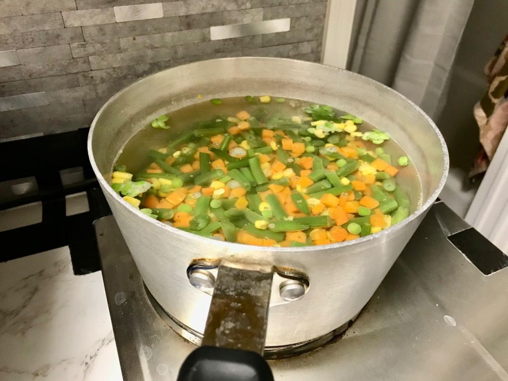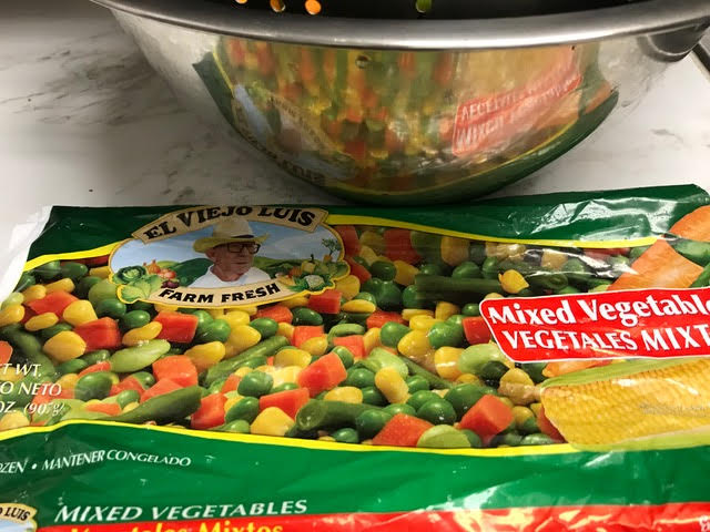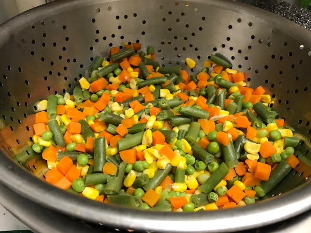32 oz. froz. mixed vegetables, thawed and boiled in water to cover till plump, drain well in colander