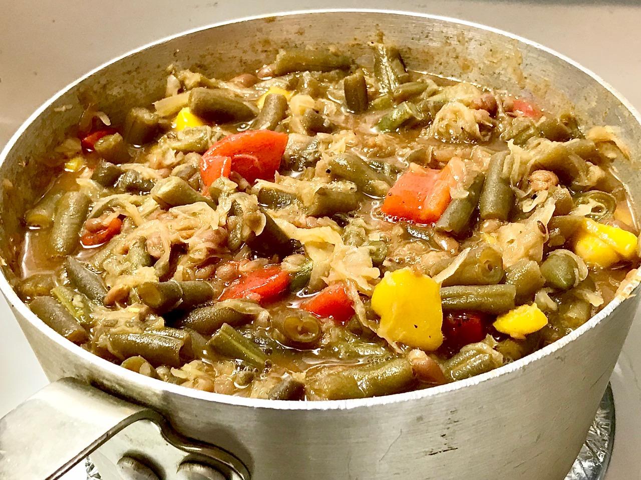 MANGO KRAUT BEANS Bourbon beans with mango, roasted pepper and green beans. Ops, almost forgot the sauerkraut. What a pairing! All the way around spells success! And it’s fat-free! Sink your teeth into that one. The chew alone is worth the effort. Makes 7 cups 22 oz. can BUSH’S GRILLIN’ BEANS Bourbon And Brown SugarContinueContinue reading “Mango Kraut Beans”